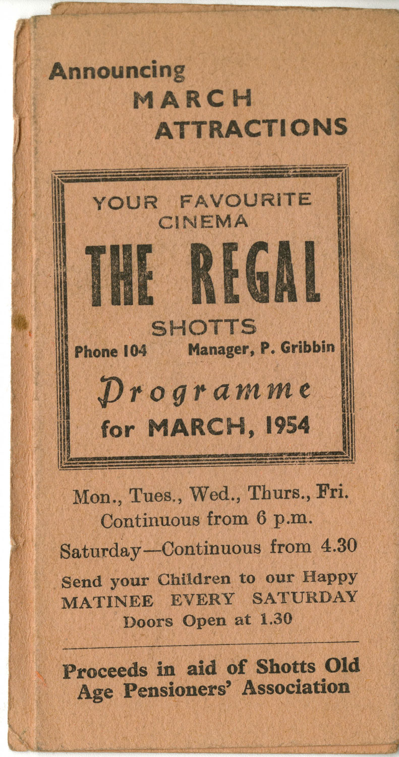 Regal Cinema Programme, Shotts, 1954