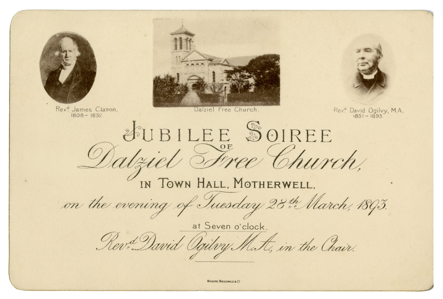 Invitation to Dalziel Free Church Jubilee Soiree, 1893
