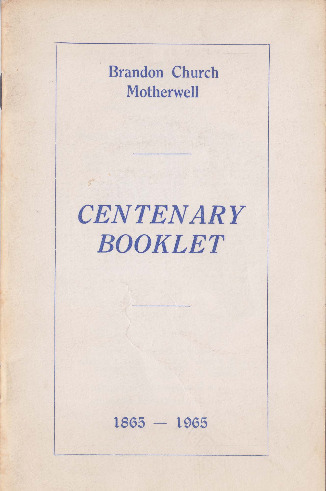Centenary booklet for the Brandon Church, Motherwell