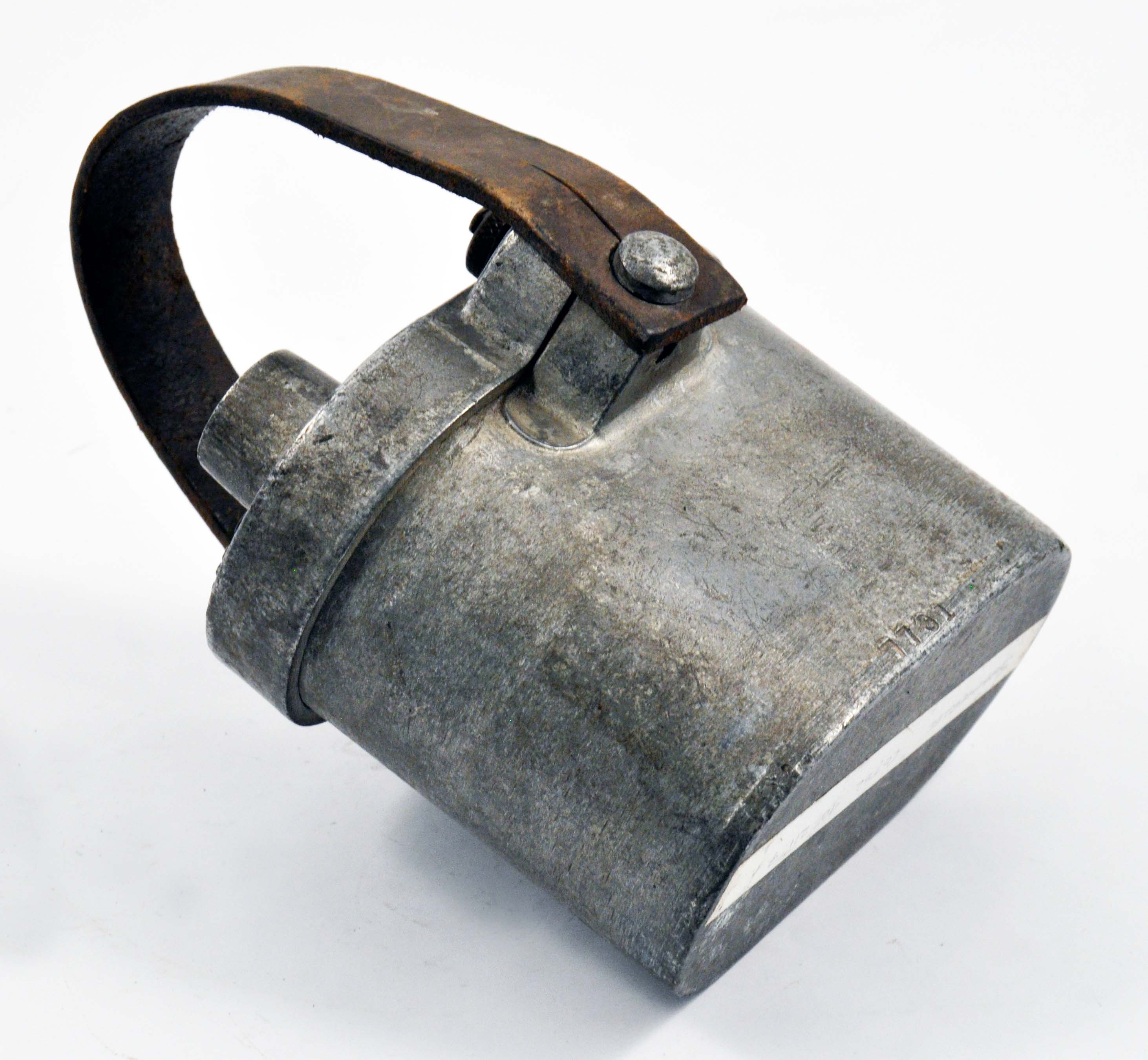 This is a magneto exploder or 'blasting machine', a device that would have been used in mining to detonate blasting caps remotely. When the detachable handle (not pictured) is depressed, an electrical impulse is generated by the machine, and sent along the line to trigger the blasting caps. The device has a robust brass casing in good condition, with a carrying handle.