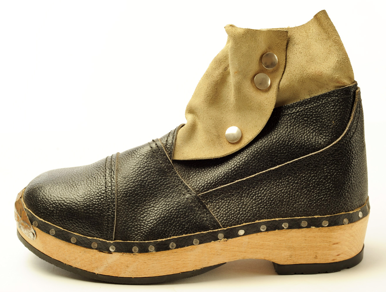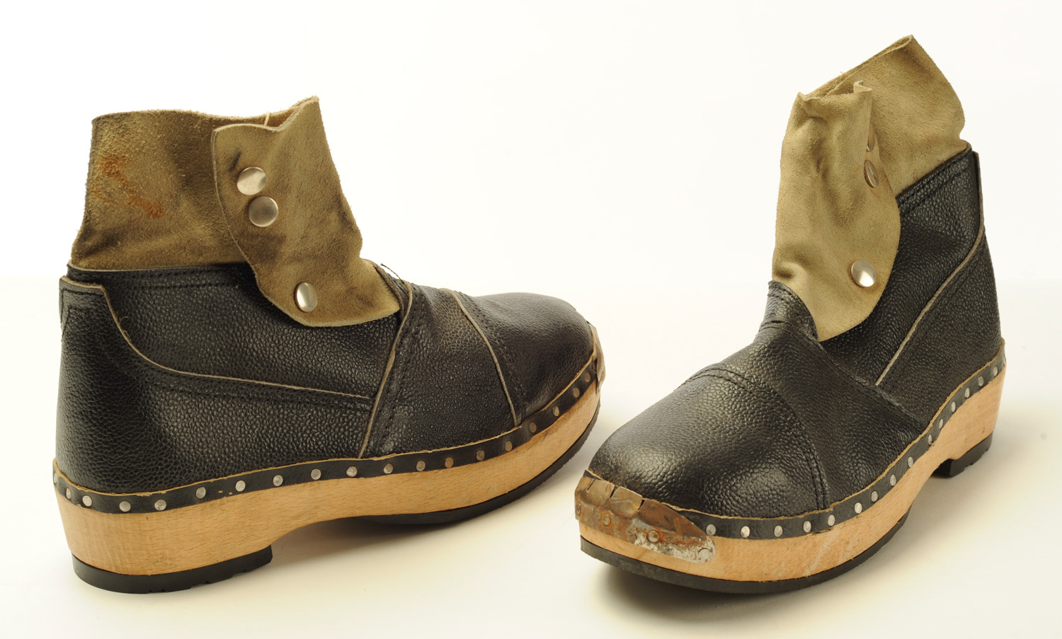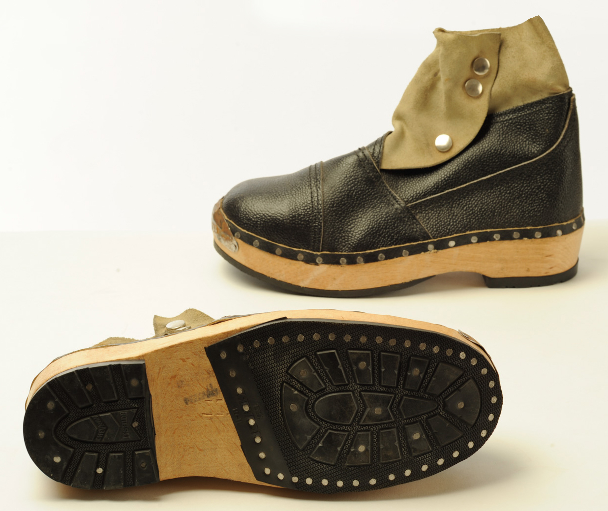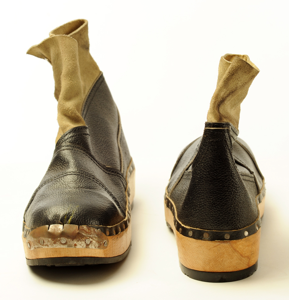 These clogs were worn by a worker in the Sugar Boiling Department at King's of Wishaw. Protective shoes were needed because the stlcky melted sugar became as hot as 160 degrees Celsius.