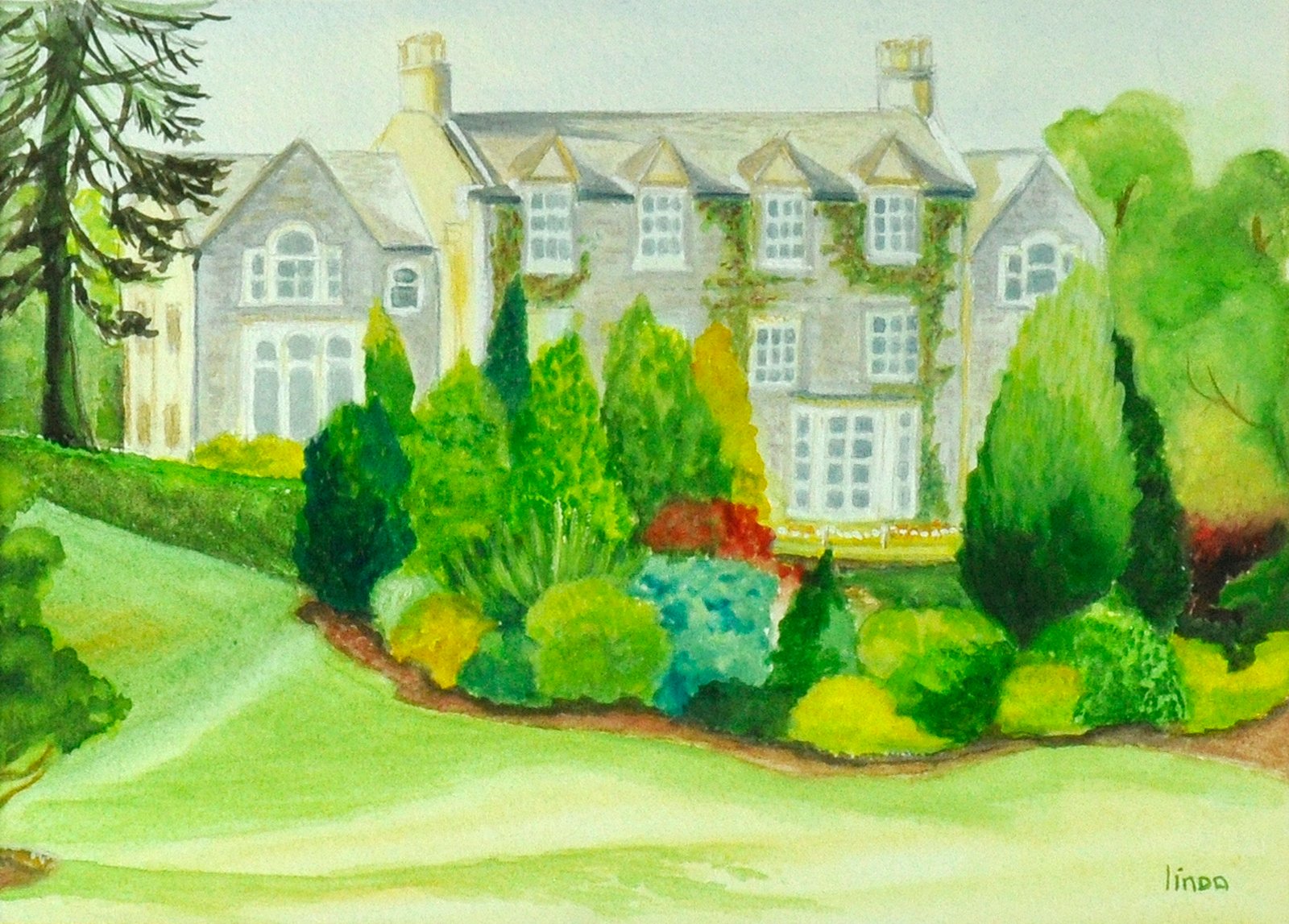 Leading off the entrance hall is a single-storey connecting corridor, created in the 1950s after the demolition of the original house. It is now used as a gallery displaying paintings by local artist Alexander Gibson and looks onto the inner courtyard.