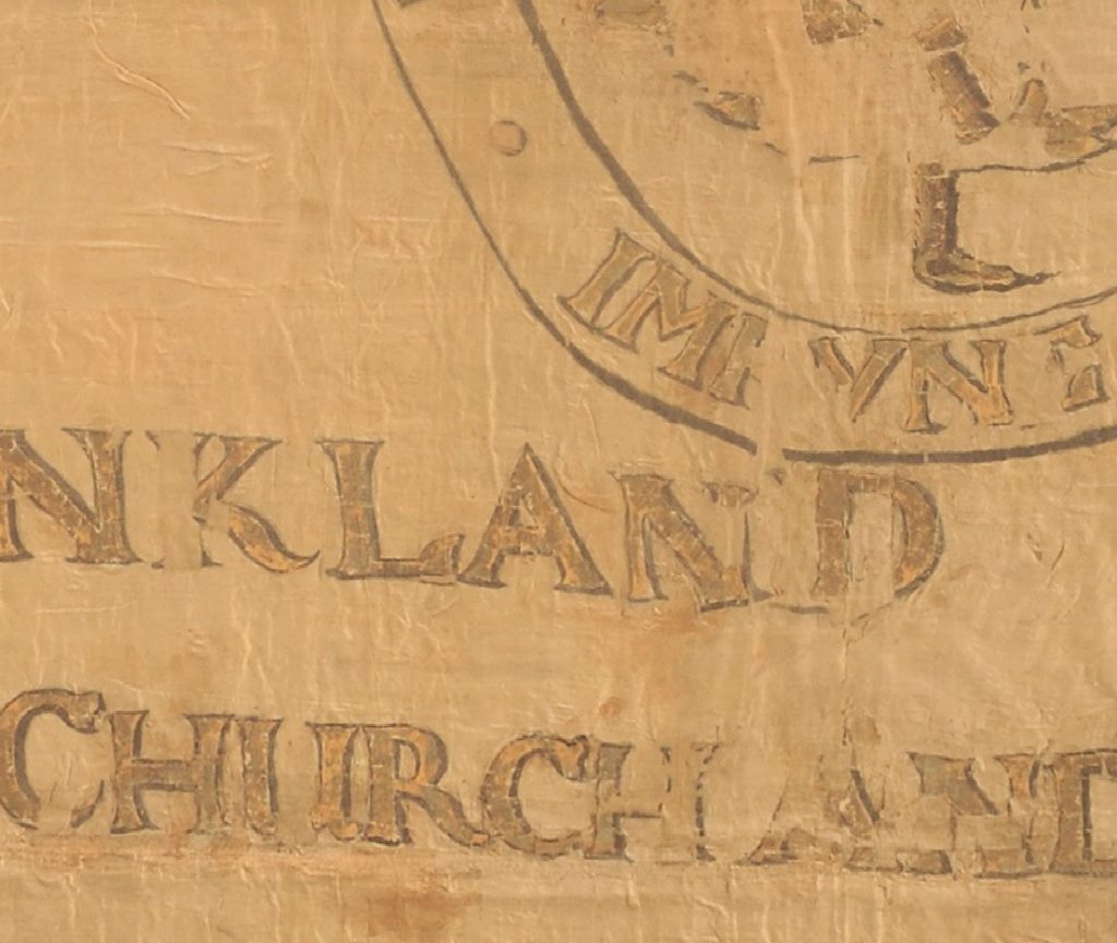 Rev. James Begg also mentions that he had commissioned ‘repairs’ on the banner. The conservation work showed that it had been glued to a canvas backing which contributed to the dark staining down the centre.